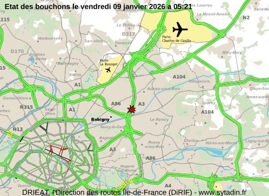 IdF IdF NO IdF SO Paris Idf SE A86 Utilisez le bouton "recharger" du navigateur pour actualiser l'état du trafic
